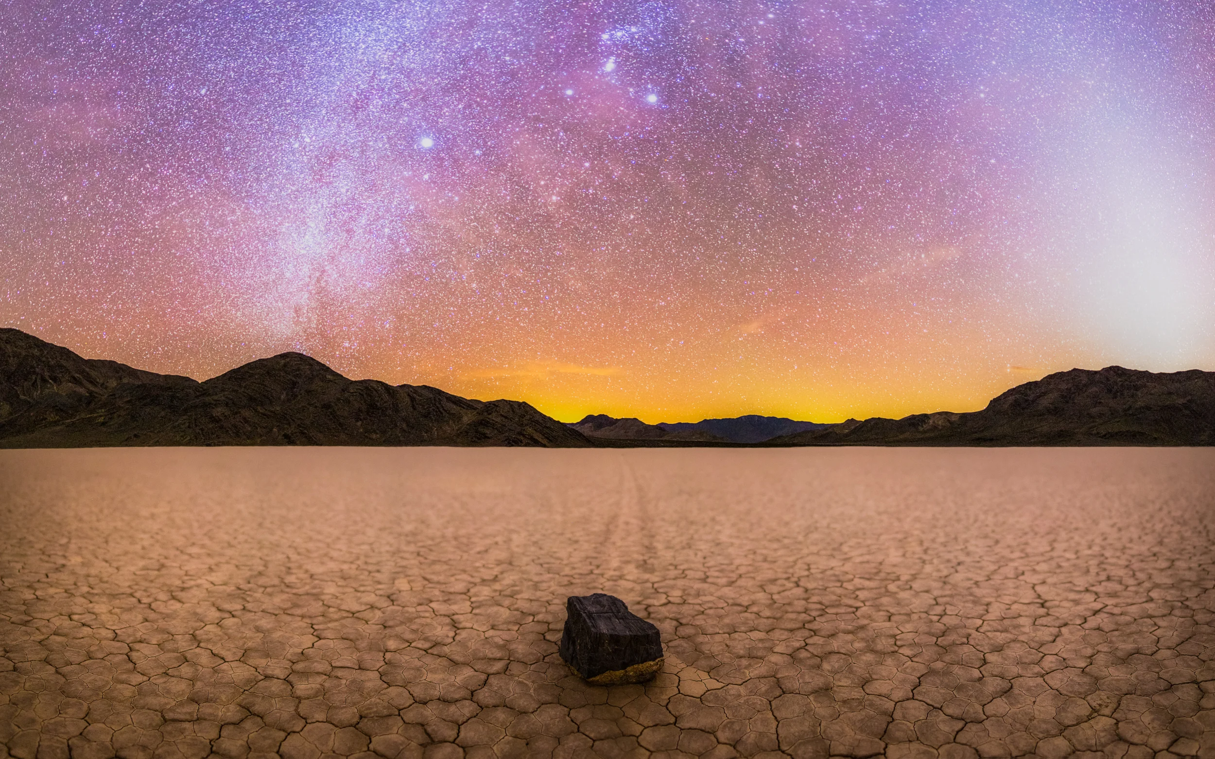 Take a trip to one of the most remote areas of Death Valley and experience the Sailing Stones of the Race Track Playa! This micro, one night workshop, is only available to attendees who have signed up for Session #1 or Session #2 and adds an additional night of instruction to the end of the workshop. This is a fantastic opportunity to photograph the Sailing Stones and Grand Stand in a small, like minded group, of new friends and put to work your new skills from the previous three nights of instruction. Photograph a winter Milky Way Arch over the Grand Stand, experience zodiacal light washing over the Sailing Stones, and have a unique and incredible opportunity to create beautiful nightscape photography.